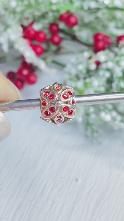 Add elegance and sparkle to your bracelet or necklace with this stunning Chamilia accent charm in sterling silver with an intricate pattern of Moonlight Swarovski Crystals in Light Siam (red).