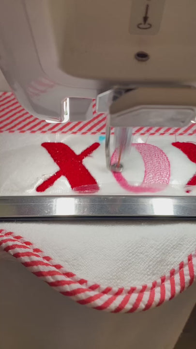 Pamper your little one with our adorable Red Embroidered Seersucker Hooded Bath Towel. Ideal for Valentine's Day, this towel evokes the whimsical joy of hugs & kisses within delicate XOXO embroidery. And to elevate your little one's bath time to pure indulgence and enjoy FREE shipping!