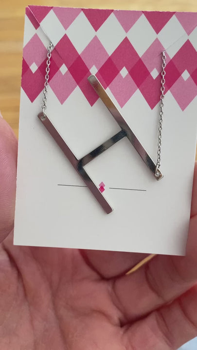 Our large letter necklace is made of silver-plated brass or gold-plated brass. It's adjustable in length so based on your neckline for the day, this necklace will adapt to your outfit!